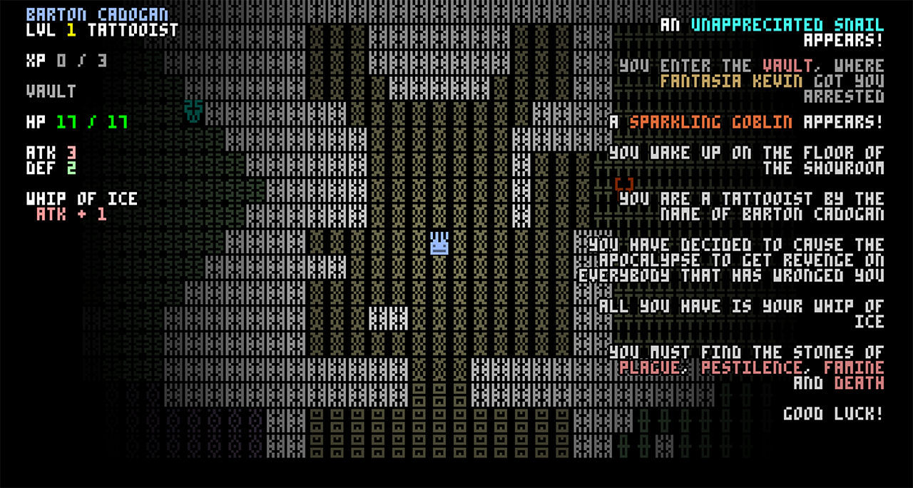 Use the arrow keys to move, attack and interact with objects; space to confirm.